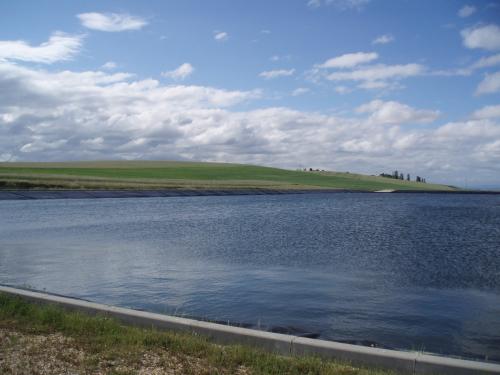• un primer sector  (3.386 ha, el 92 % de la zona regable) que se alimenta desde una balsa de acumulación ubicada a cota suficiente para regar por gravedad. Se ejecuta una captación, estación de bombeo y balsa de acumulación