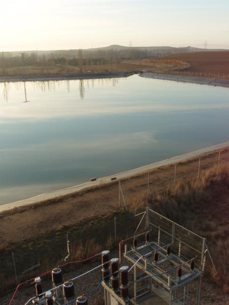 La zona regable se riega a partir de una balsa de regulación llenada desde el canal, ésta balsa alimenta una estación de bombeo que impulsa el agua hasta una balsa de acumulación que permite el riego de las 2.451 ha por gravedad.