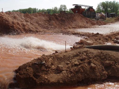 Una vez entubado el sondeo y tras decantarse los lodos se procedió a su desarrollo. A la vista de los resultados del desarrollo se determinó el equipo de aforo adecuado. Éste en principio fue una electrobomba sumergida, capaz de suministrar un caudal de 100 l/s a 150 m de profundidad, accionado por un grupo electrógeno. El aforo se realizó en 80 horas, efectuándose en las 12 primeras un ensa